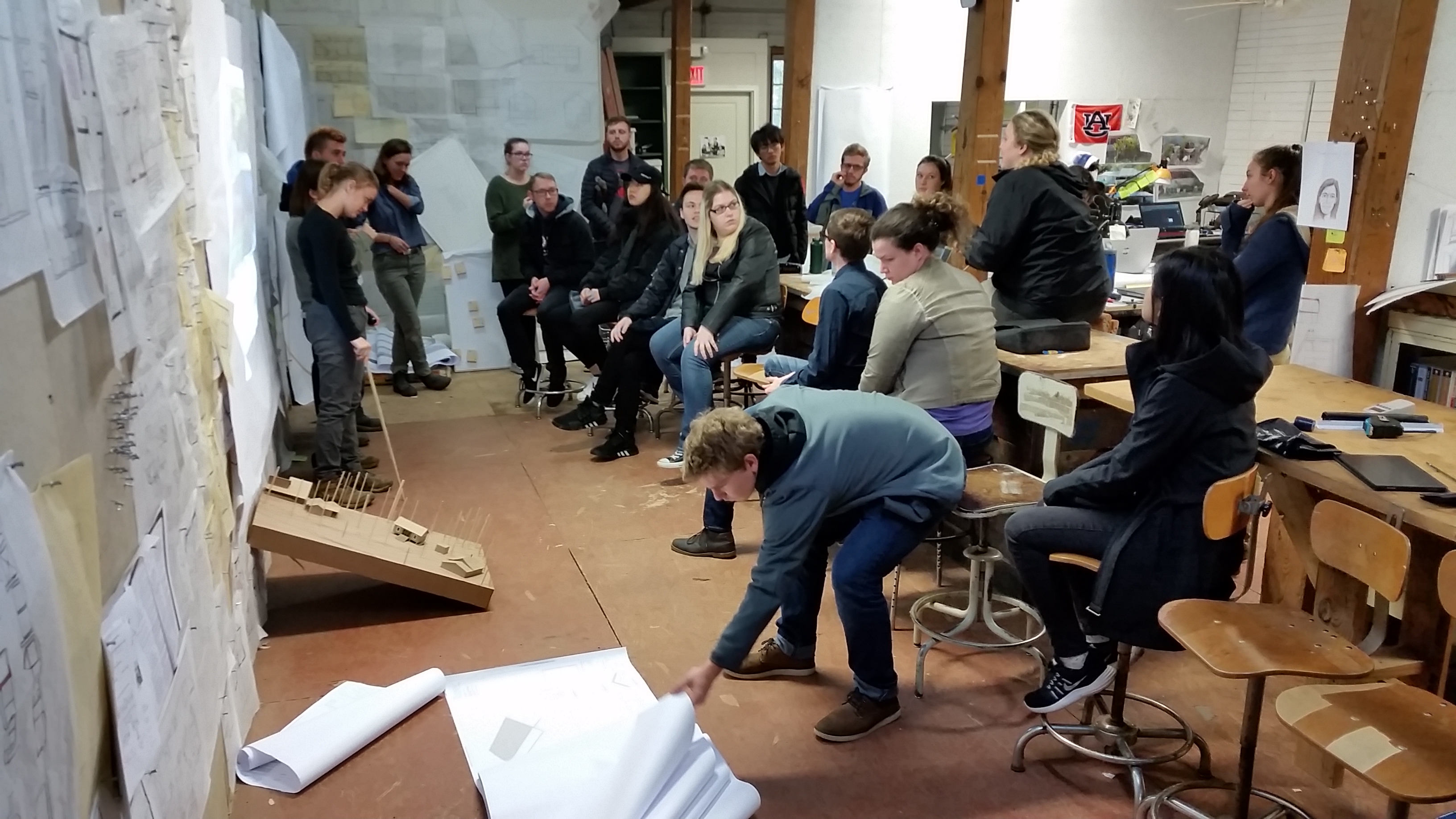 Members of the Net Positive Studio visited Rural Studio in Newbern, Alabama. Third-year students from Auburn presented their work on an affordable housing module, and answered questions we had about the origin of their work, team-dynamics, and their lives in rural Alabama. The rest of the day was spent visiting Rural Studio projects, with discussions of affordability, construct-ability, and social impact.