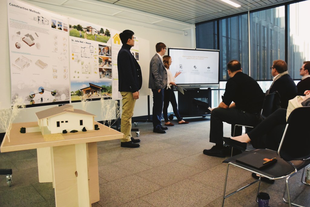 Valuable feedback allowed us to stand back and see this design through an unbiased lens. Our principles were challenged so that we could further develop our reasons for building this net-zero home. Interesting details were honed into something completely unique, places that needed improvement were rethought, and suggestions were made to trade expensive constructs with equally powerful and less expensive moments. At the end of our presentation, our project had been shaped into something new, even if we hadn’t realized it yet. The design that evolved from our work would become a unique piece in net-zero, affordable housing and something that we all are proud to build in St. John.