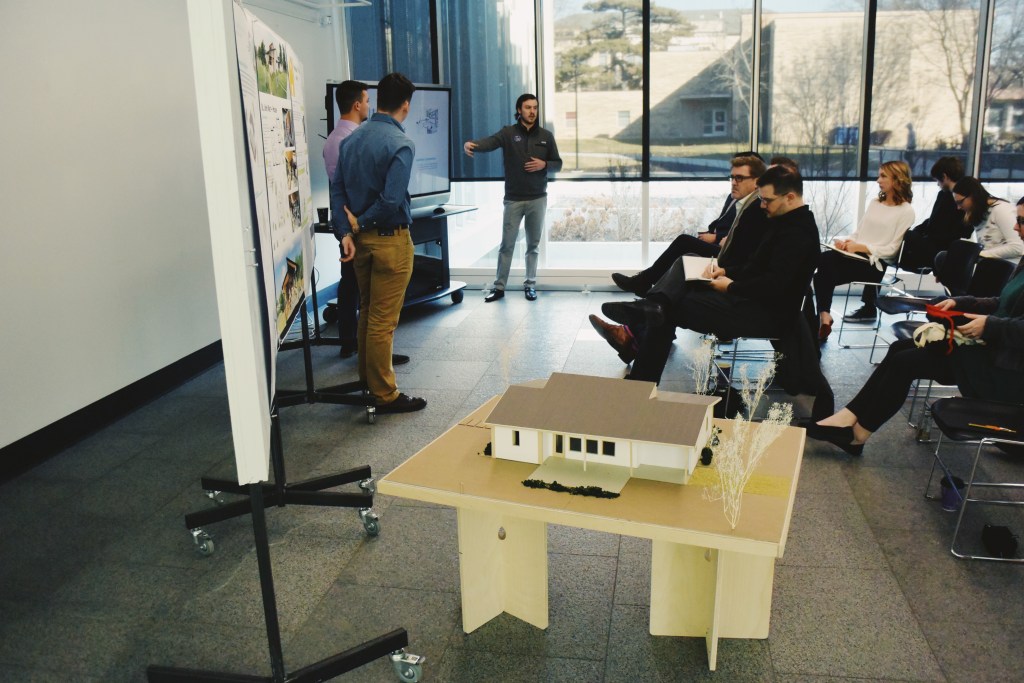 The end of the semester arrived, and it was time to reveal all our hard work. Architects from BNIM, El Dorado, the Kansas City Design Center and professors from the college came to see the results of the Net-Positive Studio. We all had worked on so much to get to this point. Site analysis of the entire town, cost-estimations, mach wall construction, and so many other new experiences were just small parts of a huge step in our own design. It was just as hard for us to explain the intricacy of our process as it was to get our project to this point.