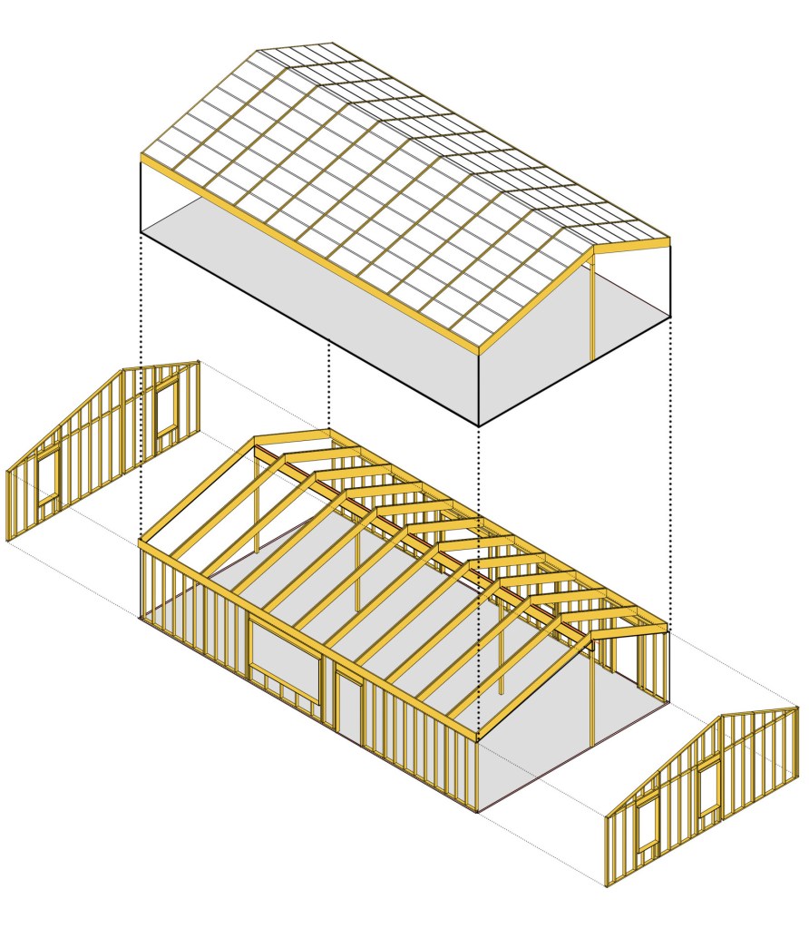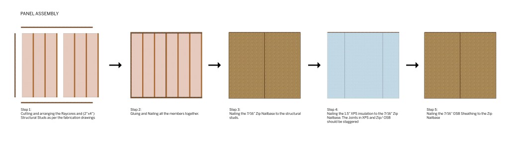 In order to keep costs low and to meet the budgetary needs of the client, our team chose early on to design the house using a prefabricated panel system for construction. Not only did this allow for reduced costs when compared to traditional stick framing, it allowed for us to have more control over the assemblies of the construction. This resulted in the building envelope efficiency we needed to create the NET+ design.