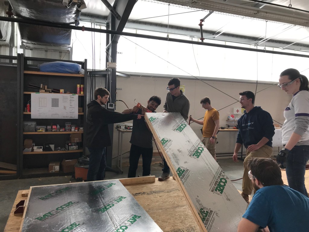Before any construction, the team used a Building Information Modeling (BIM) software to manage the process of planning and designing the panels. Overall, there are 20 exterior wall panels, 22 roof panels, and 12 interior wall panels that the team had planned on prefabricating at APDesign’s off-campus fabrication shop and were initially scheduled to be finished by the end of the spring of 2020. Due to the COVID-19 Pandemic and the campus shutdowns that occurred, construction on the panes has been halted.