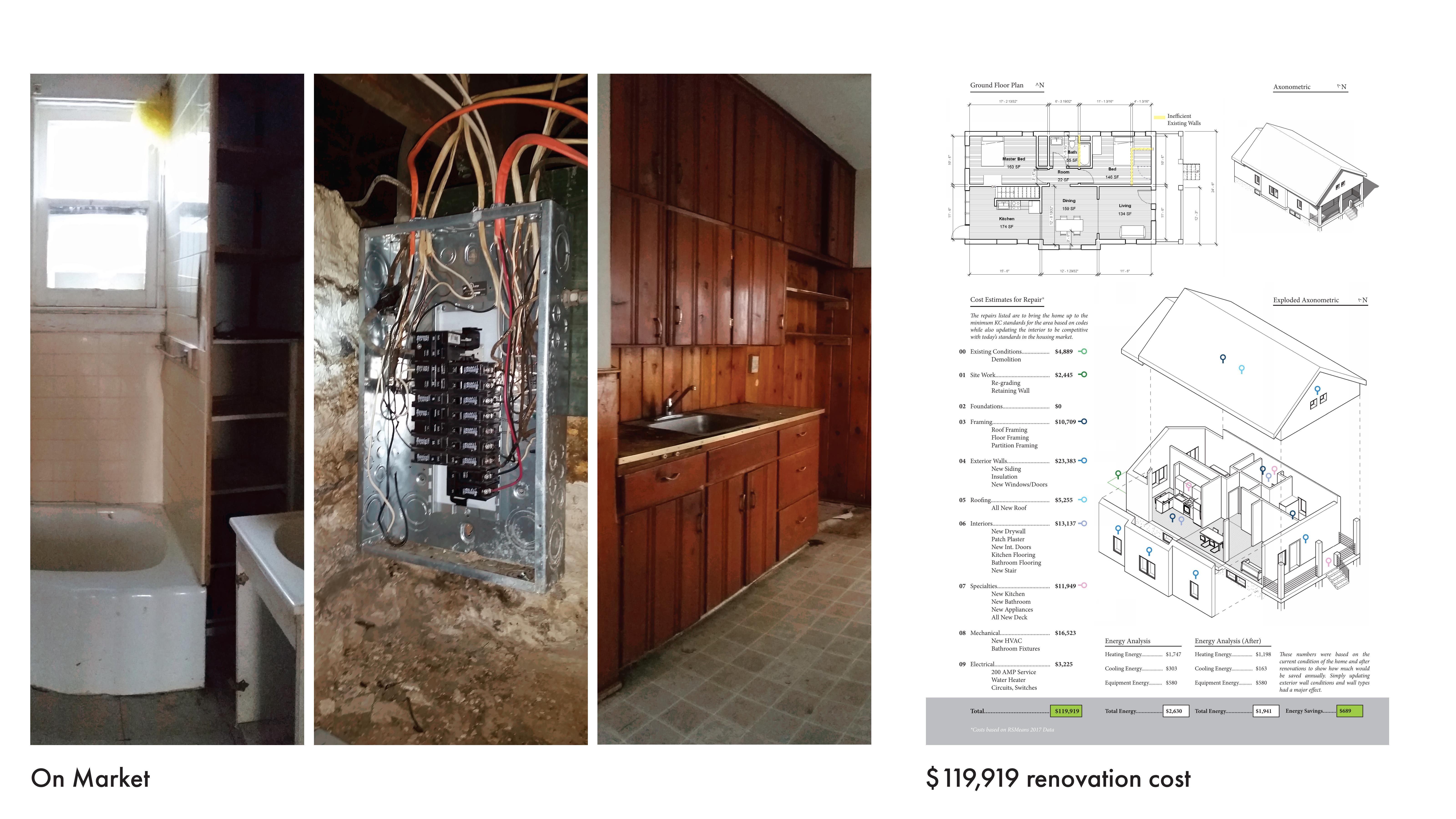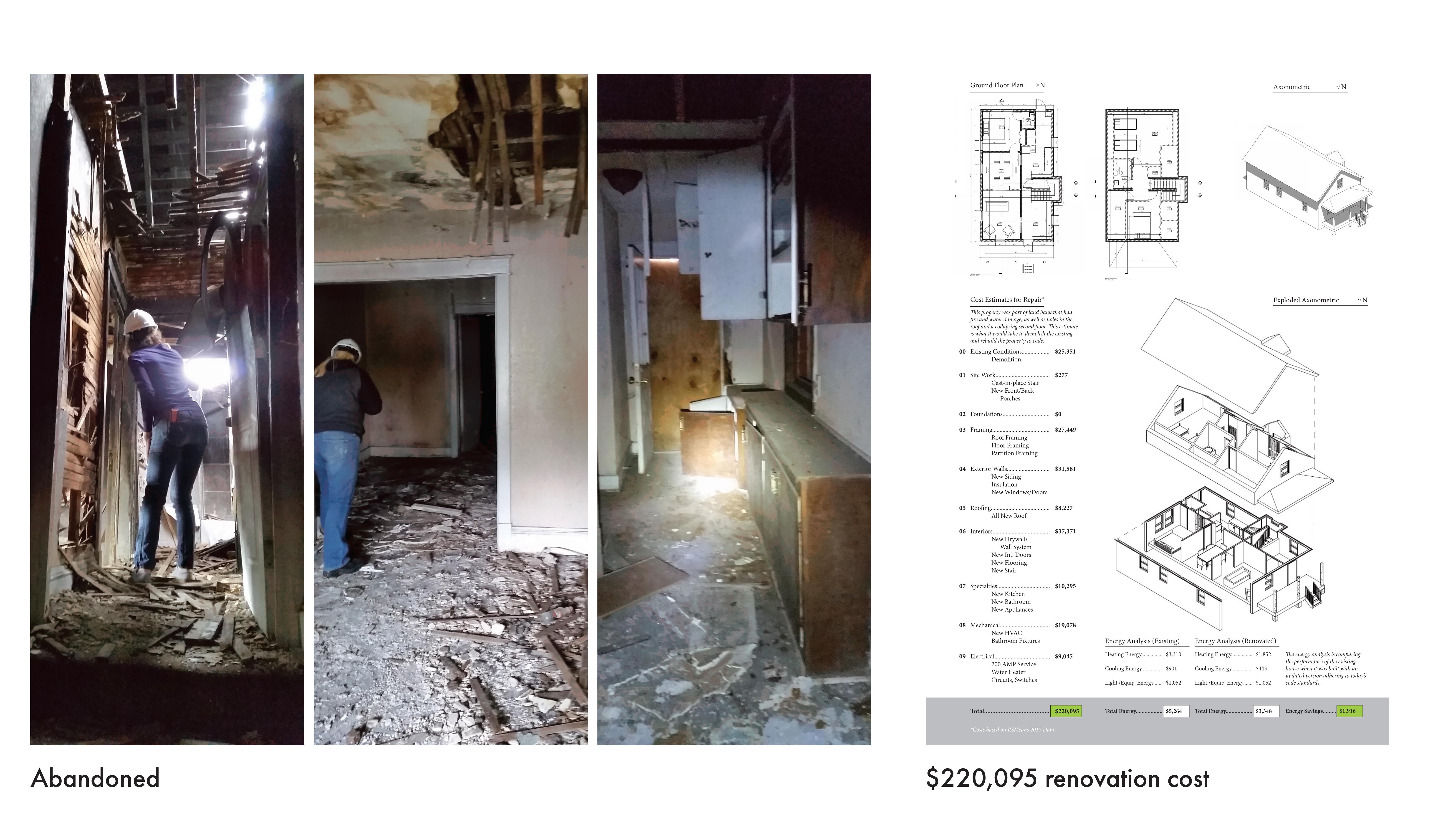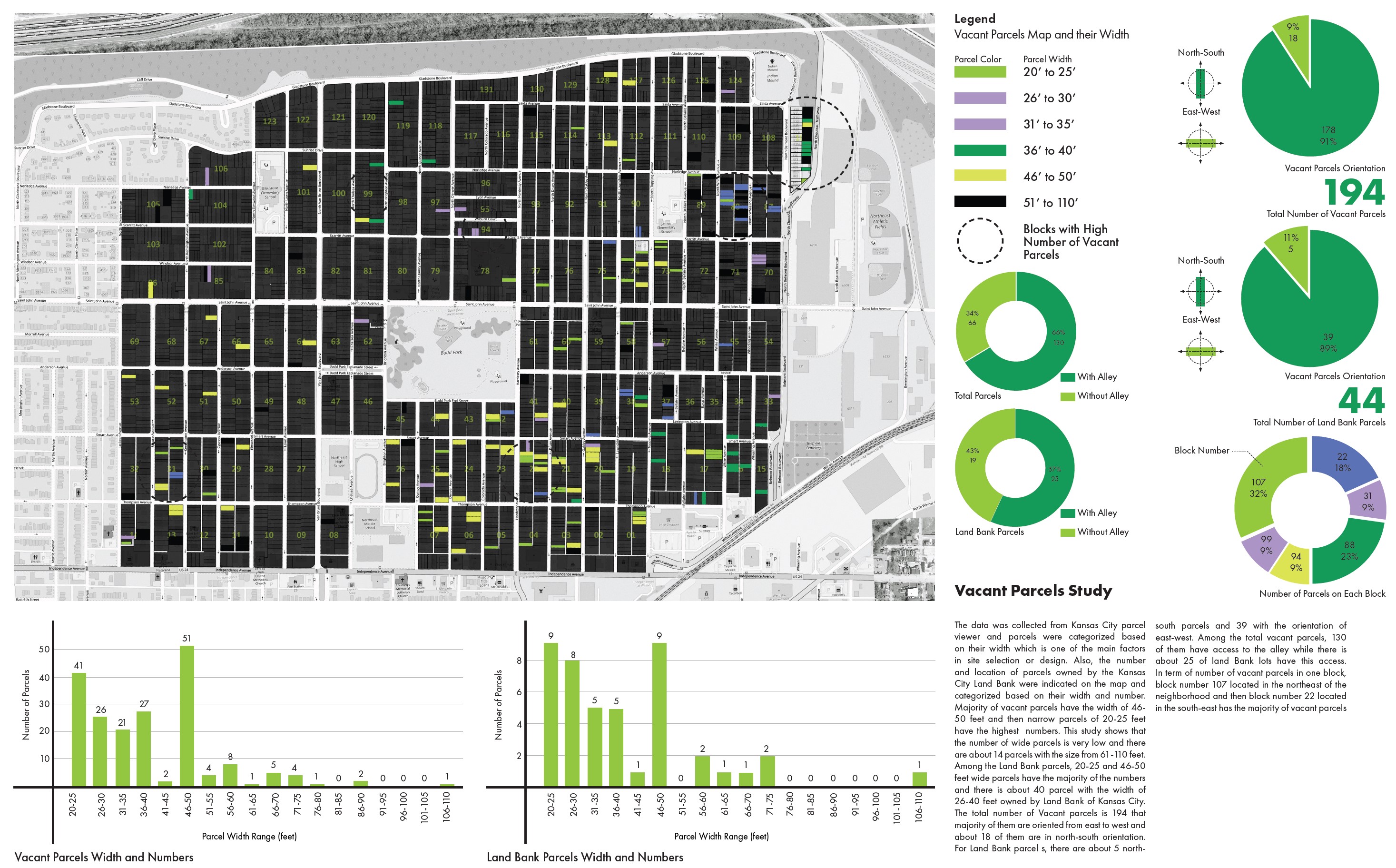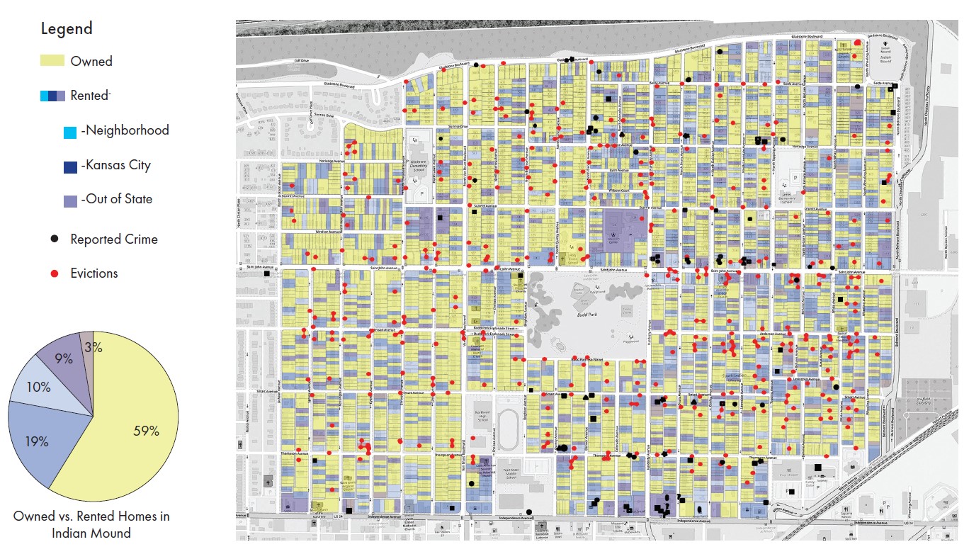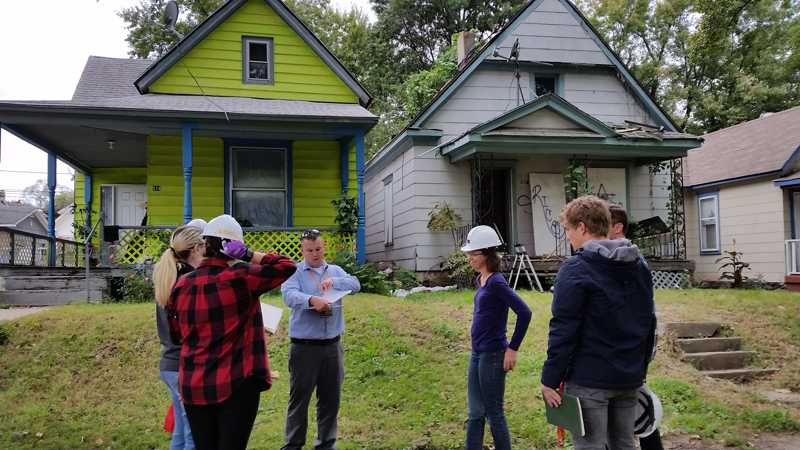 Process. Located in historic Northeast Kansas City, the Indian Mound neighborhood is diverse, tight-knit, and maintains its eclectic history — yet the neighborhood is threatened by a shortage of quality, safe, and affordable housing. The studio researched conditions in the neighborhood, observing the condition, ownership, and characteristics of housing in Indian Mound. Students also worked with the city’s land bank and a local realtor to tour distressed homes and estimate their repair costs versus new infill housing. Research was presented to city and community leaders as the studio moved into the design phase.