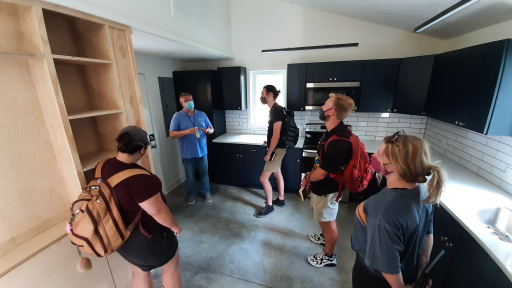 Process. Six students worked on this project, starting with an analysis of the larger neighborhood and the sites after touring the studio’s first project, which had just been completed nearby. Students spent 13 weeks developing their projects from concept through design development. At the end of DD, the partner selected the design by Beau Bezanson to further develop. The last 2 weeks of the regular semester, the students worked as a group to establish a Revit central model and begin CDs, which were completed in the spring.