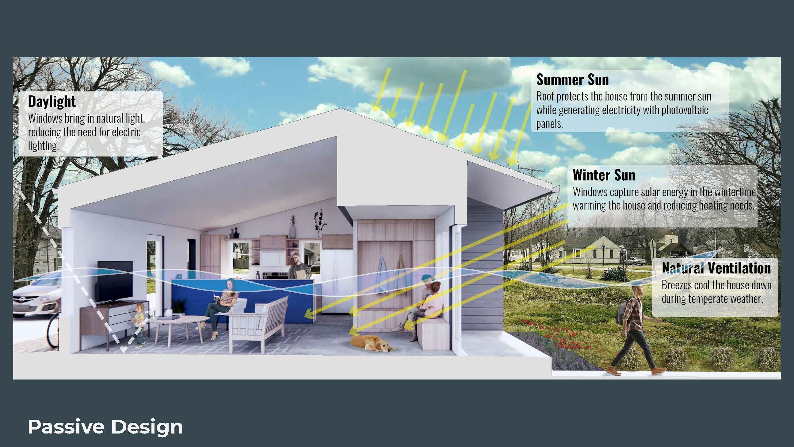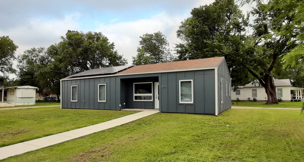 The studio engaged WSHP collaborators to design a 3-bed, 2 bath all-electric home that would be net zero, built collaboratively by students in WSHP programs, and would feature a PV array installed by the FHREEC co-op and WSHP volunteers. Similar to the studio’s prior project in St. John, the home would be purchased by an income-qualified family through Habitat, who would also GC the project for the educational partners. The project’s target sales price was $150,000. The studio explored two different projects sites: a group of sites in Manhattan and a vacant lot in Ogden, on which the project was eventually built. The house was completed and sold in early 2022 through Habitat for Humanity.
