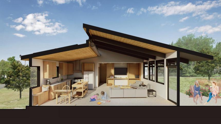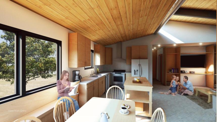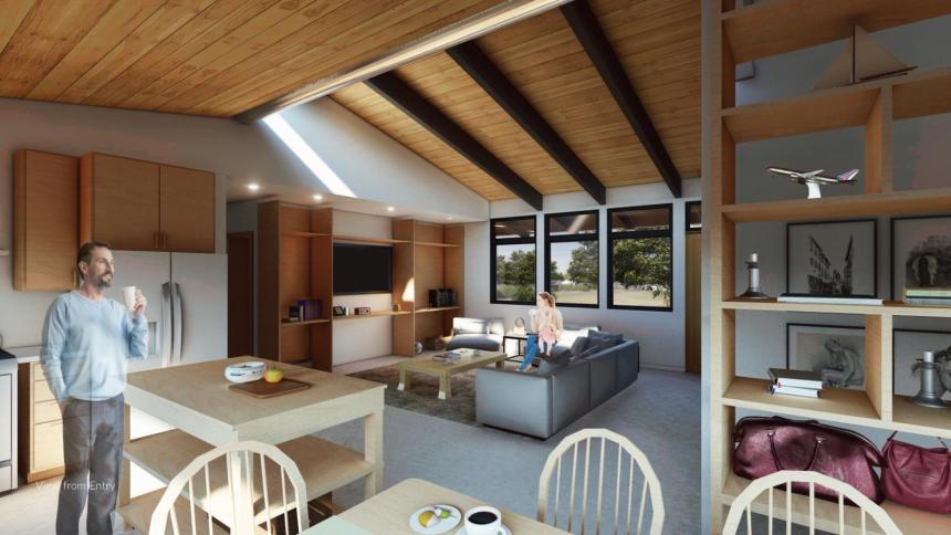 We gained valuable feedback from dozens of residents throughout St. John. Sticky notes covered the sheets of drawings with feedback ranging from “I love the open floor plan” to “this exterior is much too modern.” The input, while widely varying, allowed us to understand the feelings of the town about this house and our studio’s work as a whole. Now where do we go from here? We had the six schemes, plenty of input, and 14 students ready to keep working. We took a step back and analyzed common themes in the projects. Certain elements became clearly necessary, such as three bedrooms, an open and connected public space, a higher importance in custom casework, and a need for all of us to realize a single, solid concept.